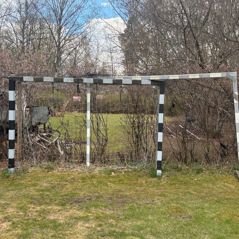 Vältsäkert med förankring i mark med jordspjut, tillverkat i varmförzinkat stål. Nät medföljer. Målen går att plocka isär för transport.