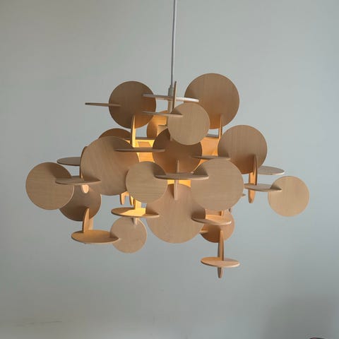 Grå Bell taklampa från Normann Copenhagen, design Jacob Rudbeck. Svart sladd, vit insida och rund takkopp i samma stil som lampan. Ljuskälla ingår