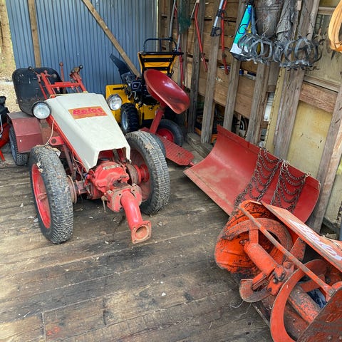 Äldre belostraktor med plog behöver fixas till svårstartat stark maskin att ploga med