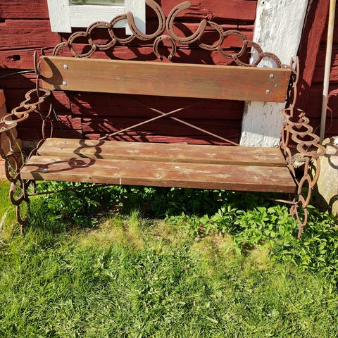 Dekorativ trädgårdssoffa, grön metall.