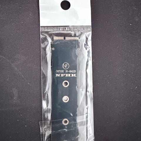 Mac ssd slot adapterkort för anslutning av SSD. Har guldfärgade kontakter och skruvhål för montering.