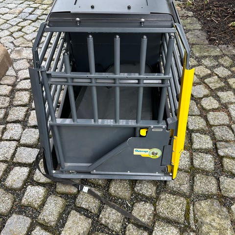 VarioCage Original stl L från Mimsafe. Använd i ca 2 år. Buren kan förlängas och passar dom flesta bagageutrymmen. Passade vår hund om 25 kg utmärkt.