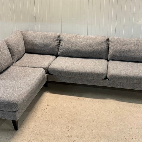 Grå 3-sits soffa med schäslong vänster (divansoffa) från Mio, modell Maison i toppskick.