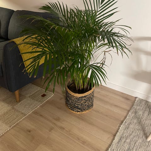 Stor yuccapalm med 2 stammar. Roten 30-40 år gammal. Fin grön växt att ha inomhus, i uterum eller under sommarhalvåret även utomhus..