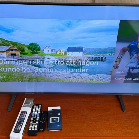 Tvn kommer med fjärrkontroll, stativ/ben och strömsladd. Den är i perfekt skick och kan testas på plats.