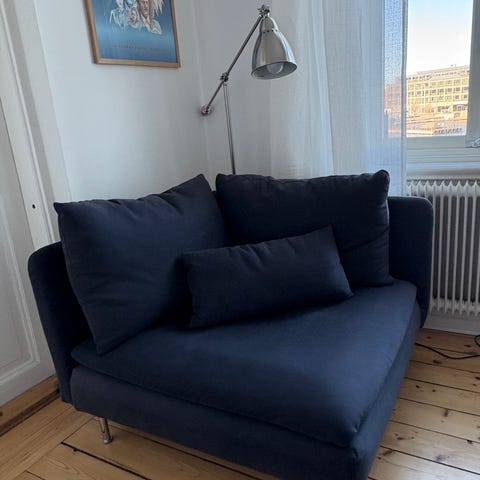 En Söderhamn-modul i nästintill nyskick. Den är i en tålig grå färg och kromade ben. Jag misstänker att klädseln nu är utgången så jag kan inte hitta namnet men den har inga tecken på slitage. Jag har köpt en ny soffa och vill bli av med denna.