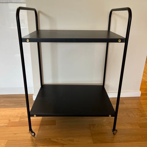 Fint hylla i metall med hjul. Nypris 1699. Kan användas som bar vagn.