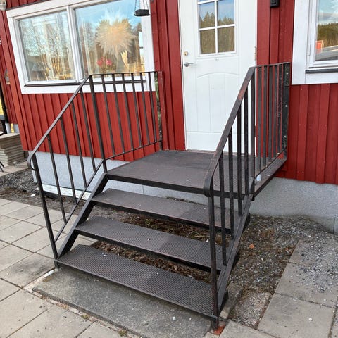 Det är en metall veranda som man kan använda för bakdörren eller framdörren man hänger det upp litet under dörren den är jätte stark 💪