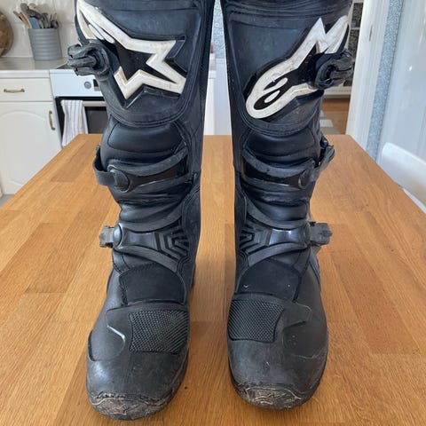 Svarta crossstövlar från MSR i stl 34 för barn. Justerbara spännen framtill och förstärkt tå med metallkant samt grov sula.