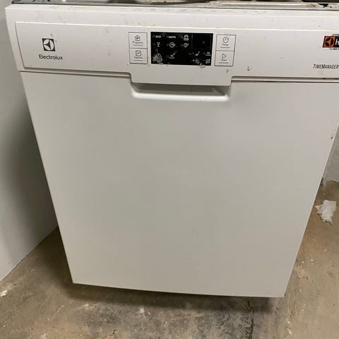 Siemens underbyggd diskmaskin i vitt utförande med frontpanel och handtag upptill. Har överkorg för bestick och flera korgar och program som styrs via knappar på insidan av luckan.