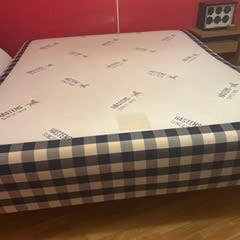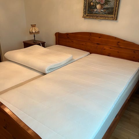 Dubbelsäng inklusive resårmadrasser och bäddmadrasser bortskänkes.