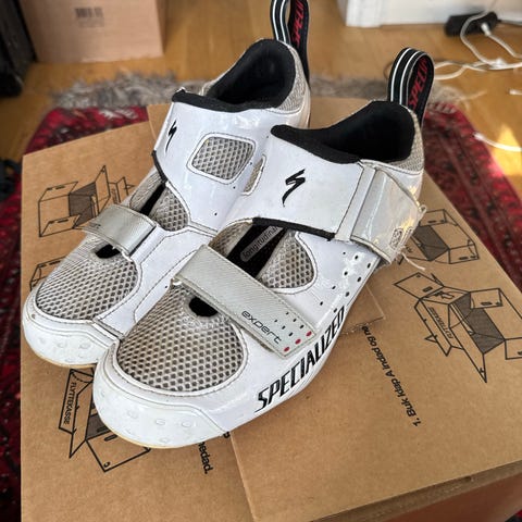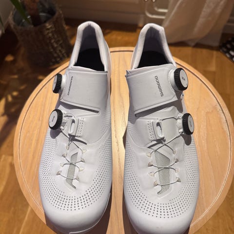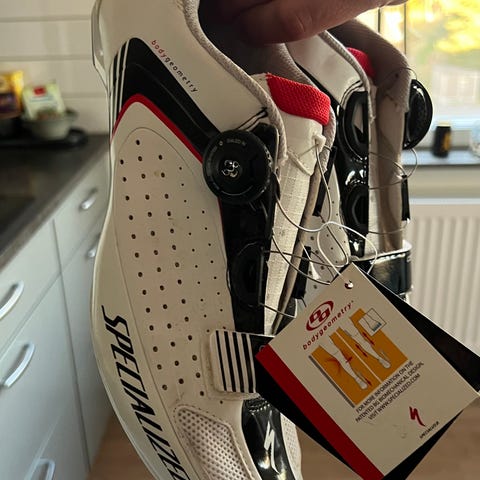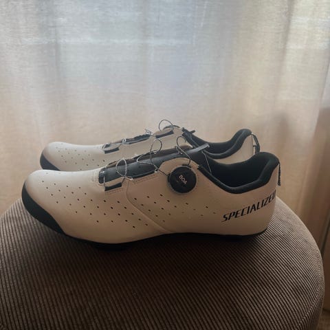Vita Specialized S-works Torch landsvägsskor i storlek 44,5. Väldigt fint skick. Kommer i förvaringsväska