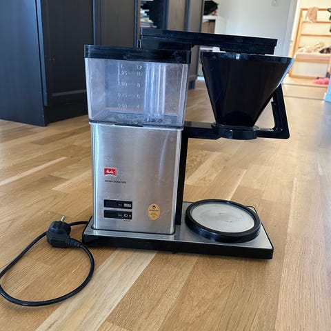 Moccamaster kaffebryggare med glaskanna och separat vattenbehållare. Köpte nyligen ny filterhållare eftersom den gamla började strula. Avkalkad och redo för användning. Hämtas i Hägersten