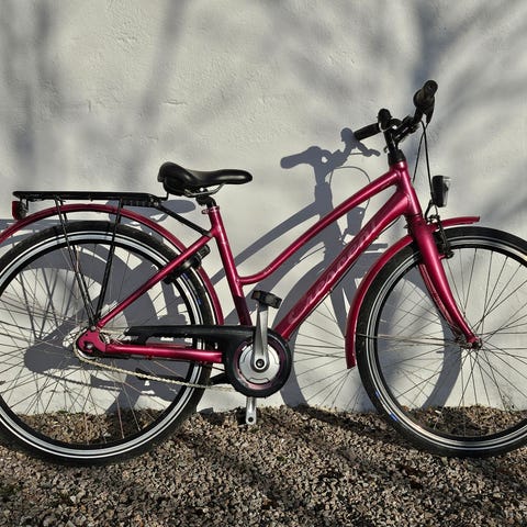 Crescent barncykel med 26" hjul och 3-växlad vridreglage på styret. Utrustad med pakethållare, skärmar och stödben.