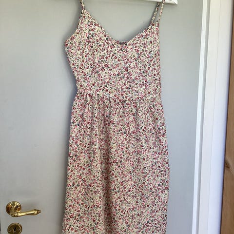 Tunikan/Klänningen har ett mönster med små blommor och är designad för vardagligt bruk.