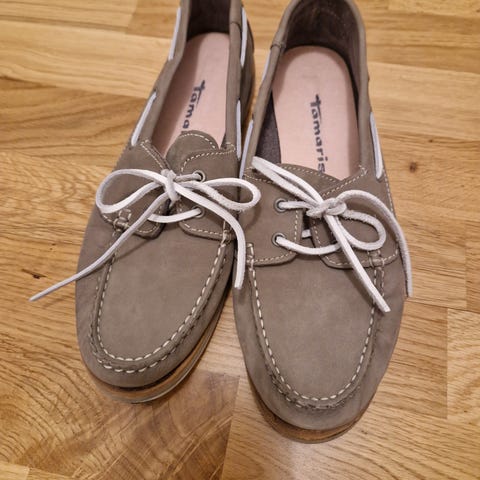 Loafers från Tamaris i stl 39, beige snakeskinnsmönster med guldfärgat spänne upptill. Mjuka innersulor och låg klack, säljs i originalkartong.