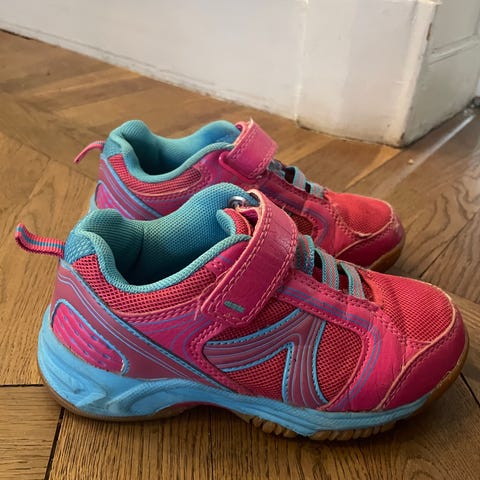 Rosa sneakers från Fila i stl 27 med kardborreband och snörning framtill. Mönstrad sula och mjukt tyg runt ankeln.