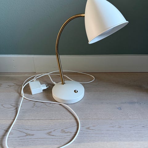 Fin äldre bordslampa. Bruksslitage, repor och märken. Behöver putsar. Fungerar. Ojordad stickpropp.
