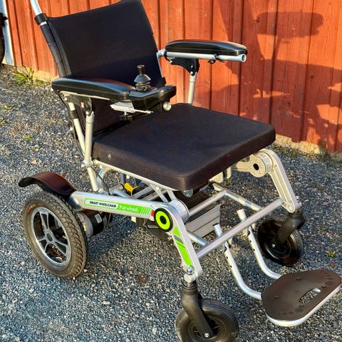 Säljer dessa 4 permobiler i varierande skick som jag köpte för ett antal år sedan för att renovera dem men det blir inte av. På gräsmattan (ensam i bild): 1 - En Permobil Exterior 90 utan styrenheten (gått till ett annat projekt). Men motorerna fungerar och hjulen bra. På vagnen: 2 - En Permobil Trax. Displayen med joystick signalerar fel i kontrollenheten. Så det måste åtgärdas. 3 - En Permobil Exterior 90. Höger motor fungerar inte. Men man ska kunna ta motorer från Exterior 90 utan styrenheten (nr 1) Bredvid vagnen: 4 - Permobil Exterior 90 som fungerar bra att köra och övrigt förutom att när man svänger vänster så slår den av (lite vänster kan svängas). Troligen ett indikatorfel med potentiometern vilket bör vara lätt att fixa. Det är alltså renoveringsobjekt för den tekniskt någorlunda händige. Köpare skall ta hand alla permobilerna. Två 12V batterier ingår totalt (sitter i nr 4). Dock finns ingen batteriladdare.