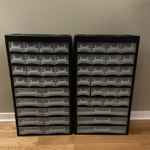 Kvalitet. Inget nytillverkat skräp. Längd 94,5 cm, bredd 29,5 cm samt höjd 35 35 cm. Grön metall hurts med massor av små lådor och avdelare , bra för skruvar eller småprylar. Lådorna har metallhandtag och etikettfack på varje front. Pris 1200 kronor för båda. Finns i Rystad strax utanför Linköping.