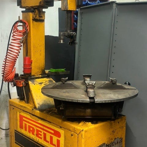 Hofmann Monty 3300 däckomläggare med sidmonterad hjälparm säljes. Stabil maskin med fotpedaler och flera reglage för enkel hantering av däck.