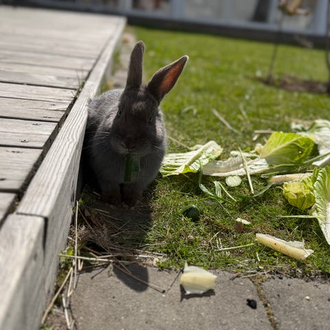 Hej! Tyvärr behöver våra två blandraskaniner,Dvärgvädur och Lejonhuvade flytta. De kommer ej längre överens.Vi har försökt att återförena de flera gånger på alla möjliga olika sätt men tyvärr funkar det inte. De är syskon och är födda i Mars 2024.Bild 1 är Chelsie och bild 2 är Nala. Ej kastrerade. De tycker ej om att bli uppburna men gillar att sitta i knät och mysa. Gillar att bli klappade. Vana att klippa klor,har aldrig bitit oss. De är vana att vara ute och springa fritt i huset. De äter pellets ( selective ) hö 100% , tjejerna ska alltid ha tillgång till pinnar/ grenar tex. Äppelkvistar är favoriten,lite grönsaker ibland ( lördagsgodis ) gurka,sallad,paprika,morot. Om du är intresserad och kan adoptera en av de så går det jättebra. En bur ingår ( standardmått ). Priset är för båda 500:- ( 250:-/st. Priset kan diskuteras! Är du intresserad är du varmt Välkommen att höra av Dig 😊🐇🐇