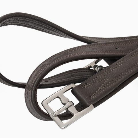 Stigläder nylonförstärkt läder. Rostfria spännen.