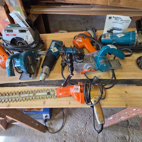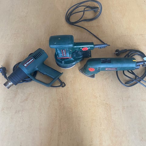 Fungerande elverktyg. Planslip, hörnslip, sticksåg, cirkelsåg, vinkelslip, polermaskin och slagborr. Låda medföljer. Passande för hobbyverksamhet. Säljes pga flytt. Finns på Gotland i Vallstena och hämtas där. Swish eller kontant vid upphämtning.