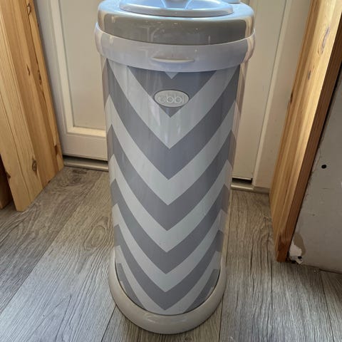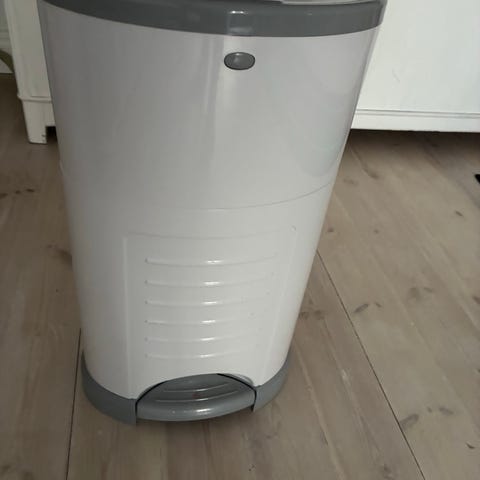 Ubbi blöjhink i grön färg med vitt lock.