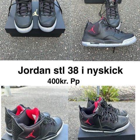 Svarta Nike sneakers i stl 38 för pojke. Låga skor med snörning och vit sula. Enna sko har jag bara använt denna sko en gång en gång och dessa sko har jag köpt från Jd sports