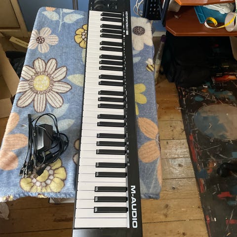 Funkar fint men har tangenterna har blekts med tiden. Perfekt om du vill ha en billig MIDI ingång för instrument till datorn. Obs. Lånad bild