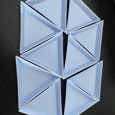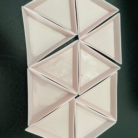 Fina vita triangelformade små fat, passar bra till småplock eller smycken. Stapelbara och lätta att ställa undan i skåpet.