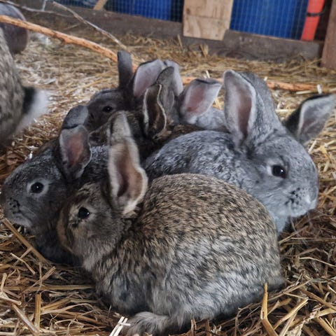 Föräldrarna är två lugna, keliga och mysiga kaniner. Mamman finns här att träffa. Pappan är tyvärr såld men finns många bilder på honom.