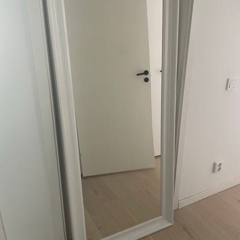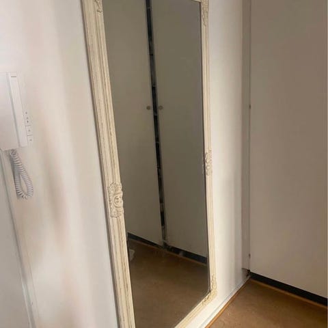 En jättefin helkroppspegel. Med dekorationsmönster på ramen.