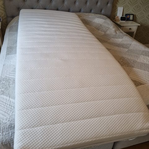 Sängarna har visst tecken av användning då tyget är något mörknat runtom. Madrasserna är i okej skick, relativt fräscha men något gulnad på ovansida.