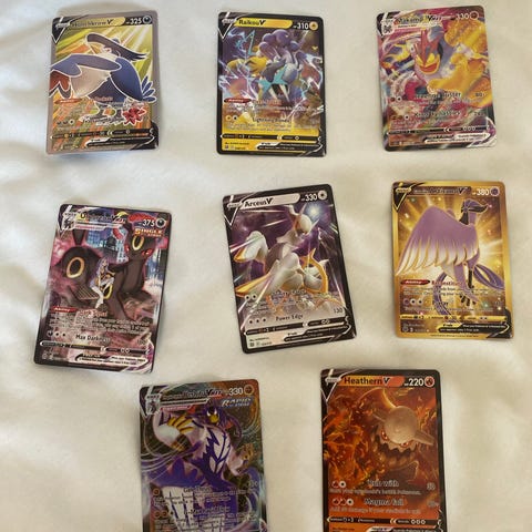 Säljer ett Pokémonkort med Mimikyu VMAX/VSTAR, 300 HP och attackerna Ominous Numbers och Max Shadow. Kortet ligger i plastficka som skydd. Nummer 069/172