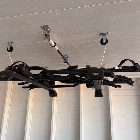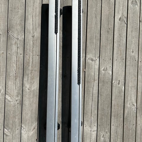 Svarta takräcken från Thule, två stycken som syns på bilderna. Stadig modell med infästning i ändarna, redo att monteras på bilens takrails/takfästen.