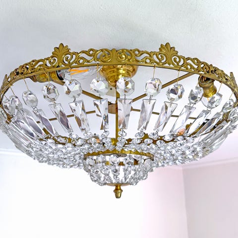 Magnifik vintage taklampa från AB Eriksmålaglas – Mässing & Kristall