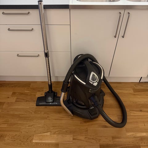 Fungerande vattenfiltreringsdammsugare, hel vattenbehållare, originalslang och manual. Robust, klassisk och bra modell.