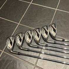 Callaway XR järnset 5,6, 7, 8, 9, Pw Utrustade med SpeedStep 80 R-Flex stålskaft och snygga klubbhuvuden med tydlig märkning. Greppen är eagleworks wrap tapes på standard grepp för att få mjukare och fastare grepp,klubborna är nybörjare vänliga och funkar även för lägre handicap riktigt sköna klubbor och är i mycket bra skick.
