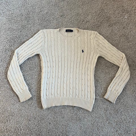Svart kabelstickad tröja från GANT i bomull, stl S med V-ringning. Liten logga på bröstet och ribbade muddar vid ärmar och nederkant.