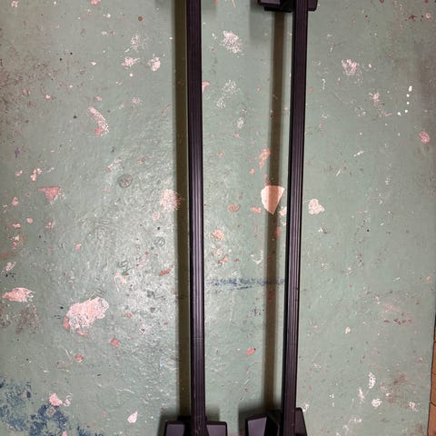 Klassisk fyrkantsprofil med ytskick av svart polymer (plast). Takräcket sticker ut lite på sidorna om fästpunkterna vilket ger en bra lastbredd.