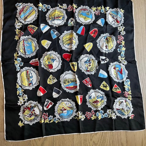 Michel Paris silk scarf. Ca 79x78 cm. Små fläckar, se bilder.