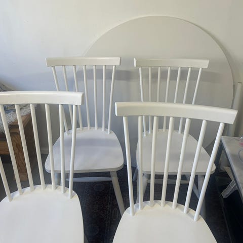 4 trästolar som är i använt skick, finns behov av att slipa och målas om.