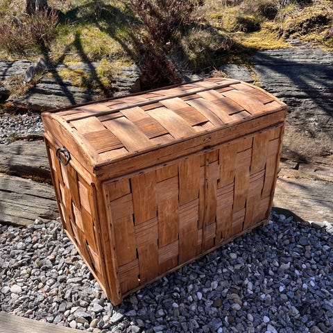 Kista/koffert i krom/metall i väldigt fint skick. På ovan sidan har mamma lagt ett plastskydd som inte ingick från början men som självklart skickas med. Den har använts som ”barskåp”, därav cirklarna i botten men inget är spillt och syns pga det är ”sammetsliknande” botten.