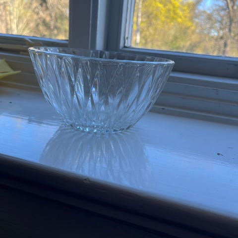 Detta är glasskålar från den finska serien "Hundkex" (Cow Parsley), designad av Pertti Kallioinen för Lasisepät Mäntsälä under 1980-talet.