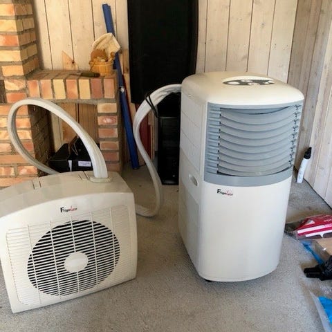 Portabel luftkonditionering Andersson ARC 3.1 på 3,5 kW i vitt utförande. Har display upptill och slang för varmluft samt energiklass A enligt etiketten.