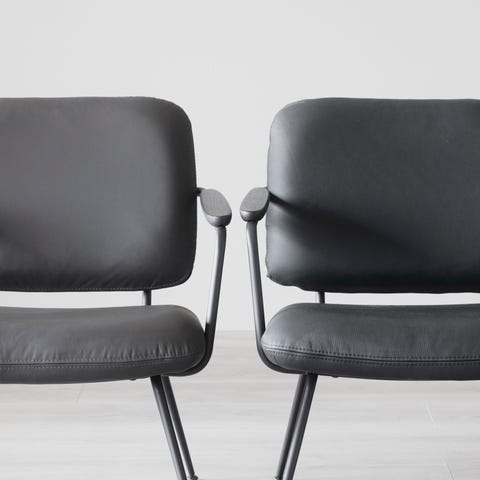 "Soffa med stilren läderklädsel i smakfull kombination med kromat stål. Sitsen och det mjuka, rundade ryggstödet är mjukt stoppade, vilket gör soffan bekväm att sitta i, perfekt för långa, härliga måltider. Sitsens ram är tillverkad av plywood som är certifierad med FSC. Läder är ett slitstarkt material som du enkelt kan torka av vid behov."