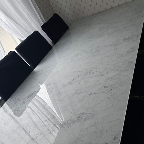 Bord glasskiva ”marmor” mönster, 110 cm i diameter, 115 cm höjd.