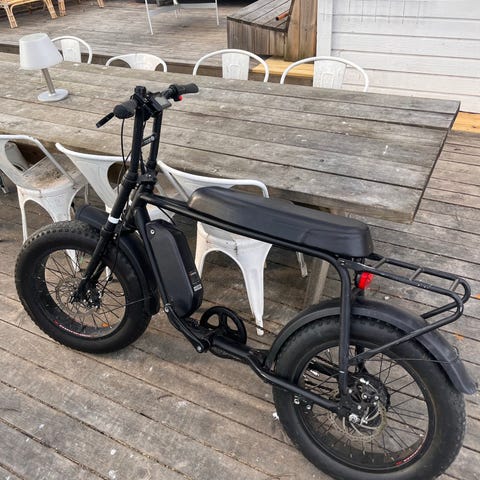 Går ungefär mot 55 km/h, 250 W, 48V, 15 Ah. Lithium batterie. Stor laddare följer med (original). Cykeln väger 37,5 kg.